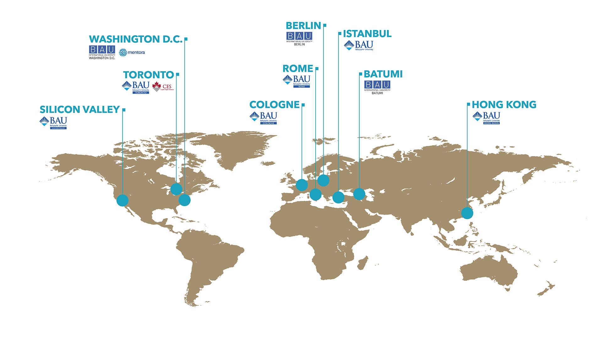 BAU Global Network, tüm dünyaya yayılmış yüksek öğretim kurumlarından oluşur. Bu uluslararası ağ, dünyanın dört bir yanından gelen öğrencileri ağırlıyor ve sağladığı kaliteli yüksek öğretimi geliştirmek için her bir şehir, eyalet ve ulusun yerel kaynaklarına erişiyor. BAU Global’in öğrencileri ve mezunları, üç kıtada yedi ülkede uzanan bir akademik topluluk oluşturmaktadır; Kuzey Amerika, Avrupa ve Asya. BAU Global ağı 4 üniversite, 2 dil okulu ve 6 uydu kampüsünden oluşmaktadır. BAU Global üniversiteleri; mimarlık, sanat, işletme yönetimi, tasarım, eğitim, mühendislik, sağlık bilimleri, bilgi teknolojileri, hukuk ve tıp alanlarında yüzlerce lisans, lisansüstü ve doktora programı sunmaktadır.